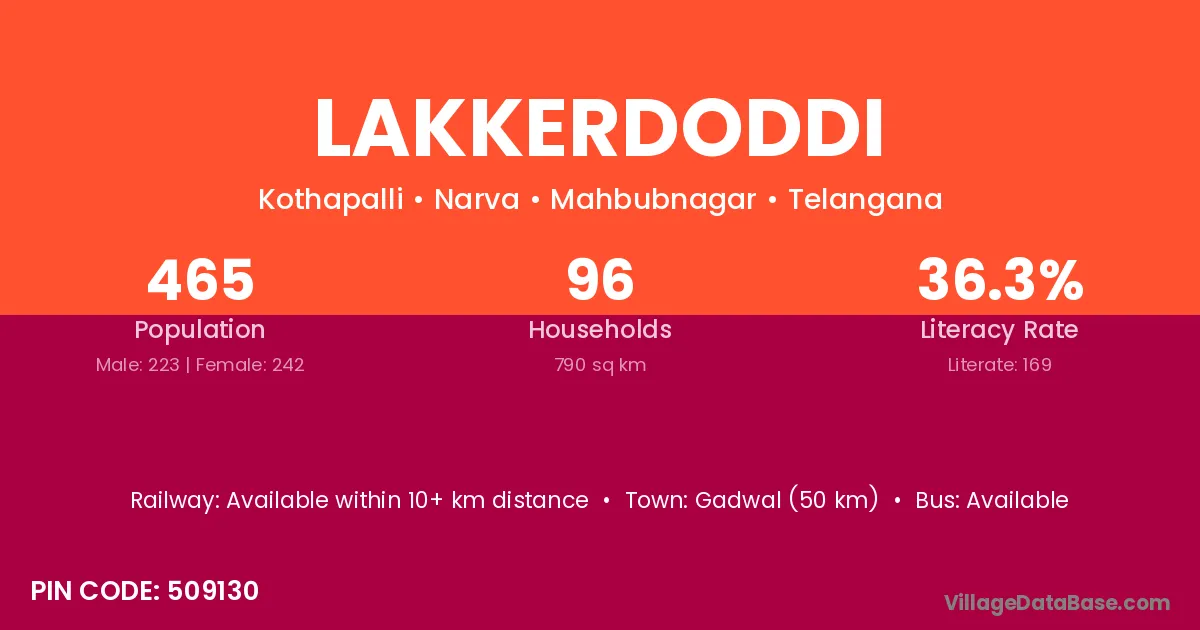 Gadwal (50 km) is the nearest town to Lakkerdoddi village for major economic activities and is located approximately 50 km away.