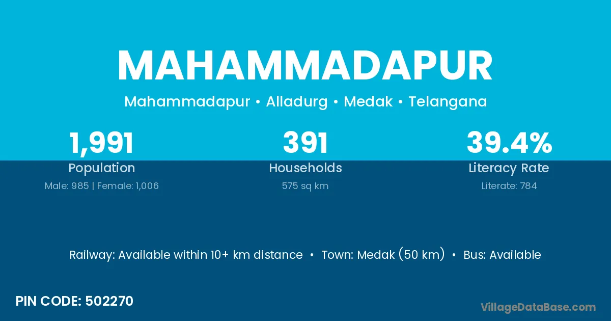 Wanaparthy (15 km) is the nearest town to Mahammadapur village for major economic activities and is located approximately 15 km away.