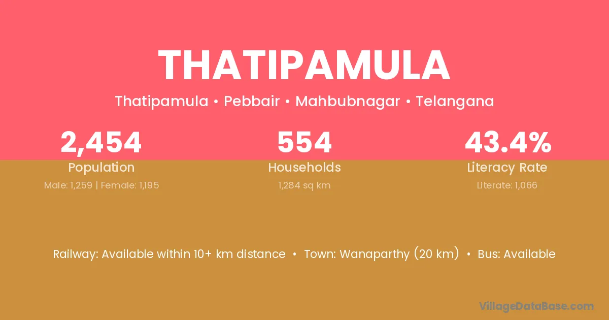 Wanaparthy (20 km) is the nearest town to Thatipamula village for major economic activities and is located approximately 20 km away.
