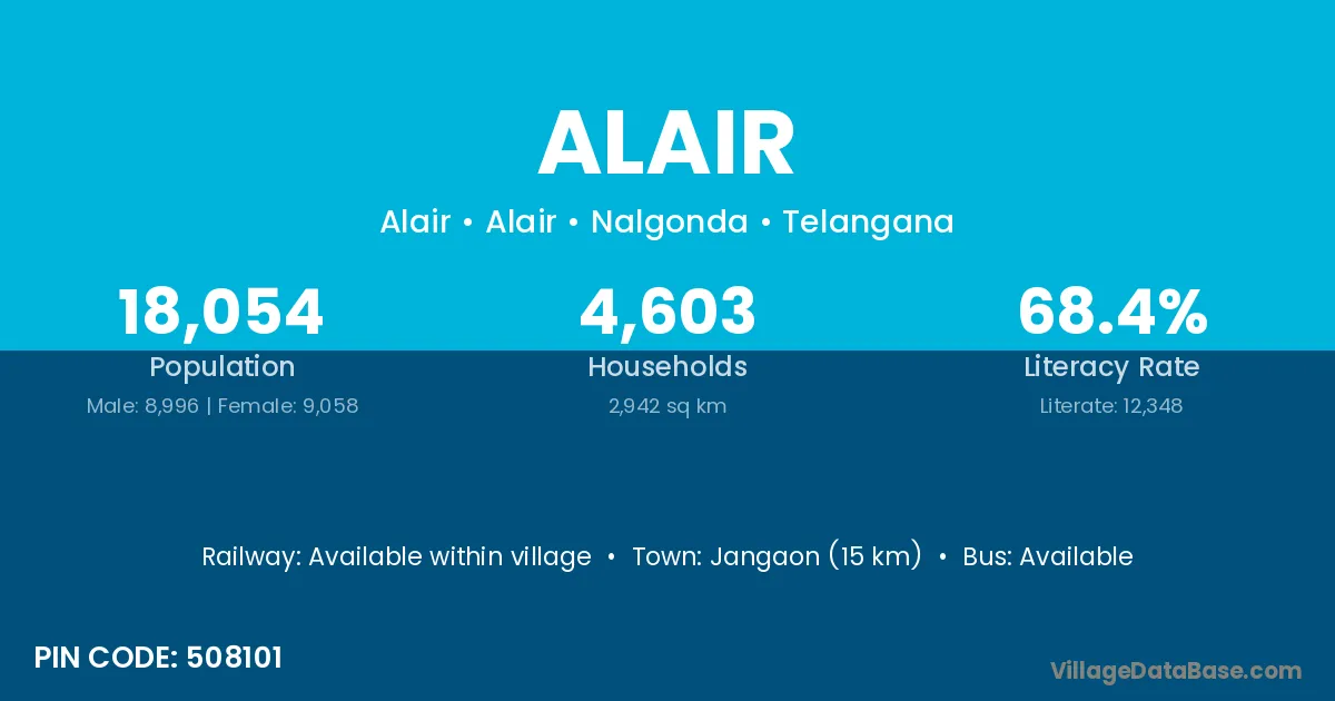 Wanaparthy (43 km) is the nearest town to Alair village for major economic activities and is located approximately 43 km away.