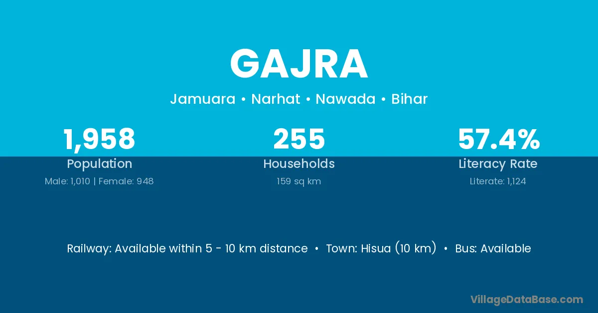 Mahbubnagar (90 km) is the nearest town to Gajra village for major economic activities and is located approximately 90 km away.