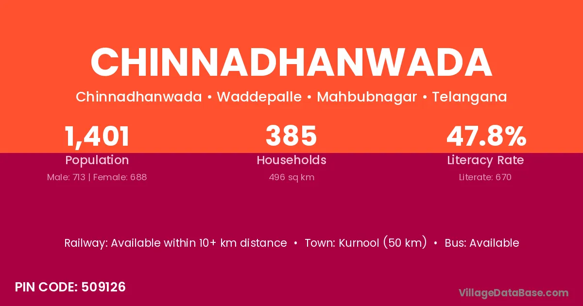 Kurnool (50 km) is the nearest town to Chinnadhanwada village for major economic activities and is located approximately 50 km away.