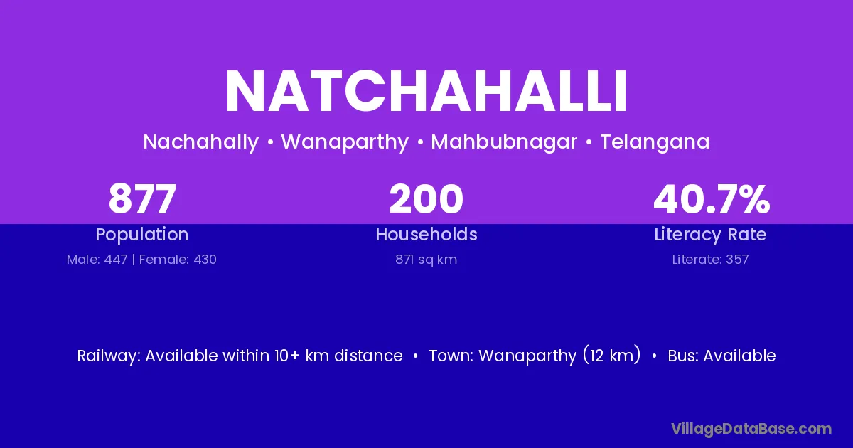 Wanaparthy (12 km) is the nearest town to Natchahalli village for major economic activities and is located approximately 12 km away.