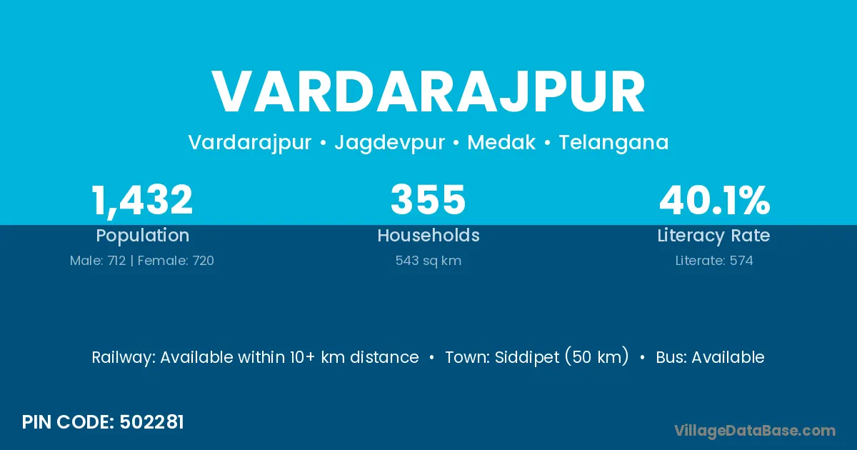Siddipet (50 km) is the nearest town to Vardarajpur village for major economic activities and is located approximately 50 km away.