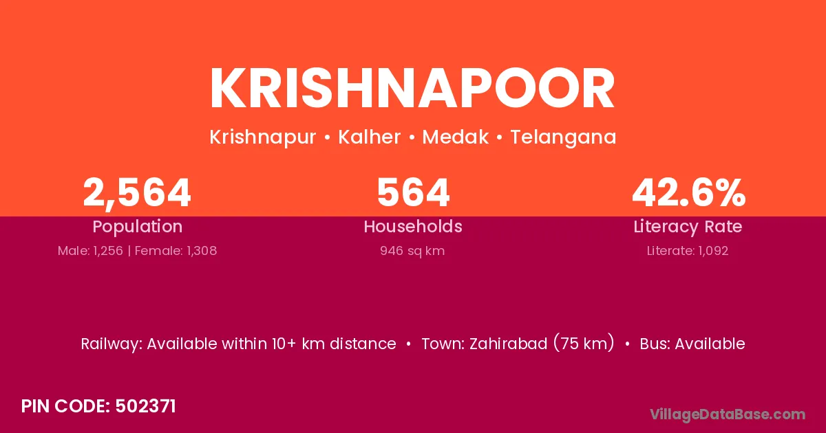 Zahirabad (75 km) is the nearest town to Krishnapoor village for major economic activities and is located approximately 75 km away.
