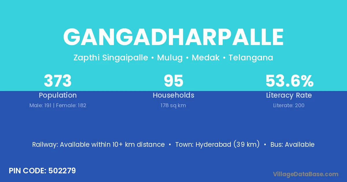 Gangadharpalle village has a total population of 373 people, of which 191 are males and 182 are females.