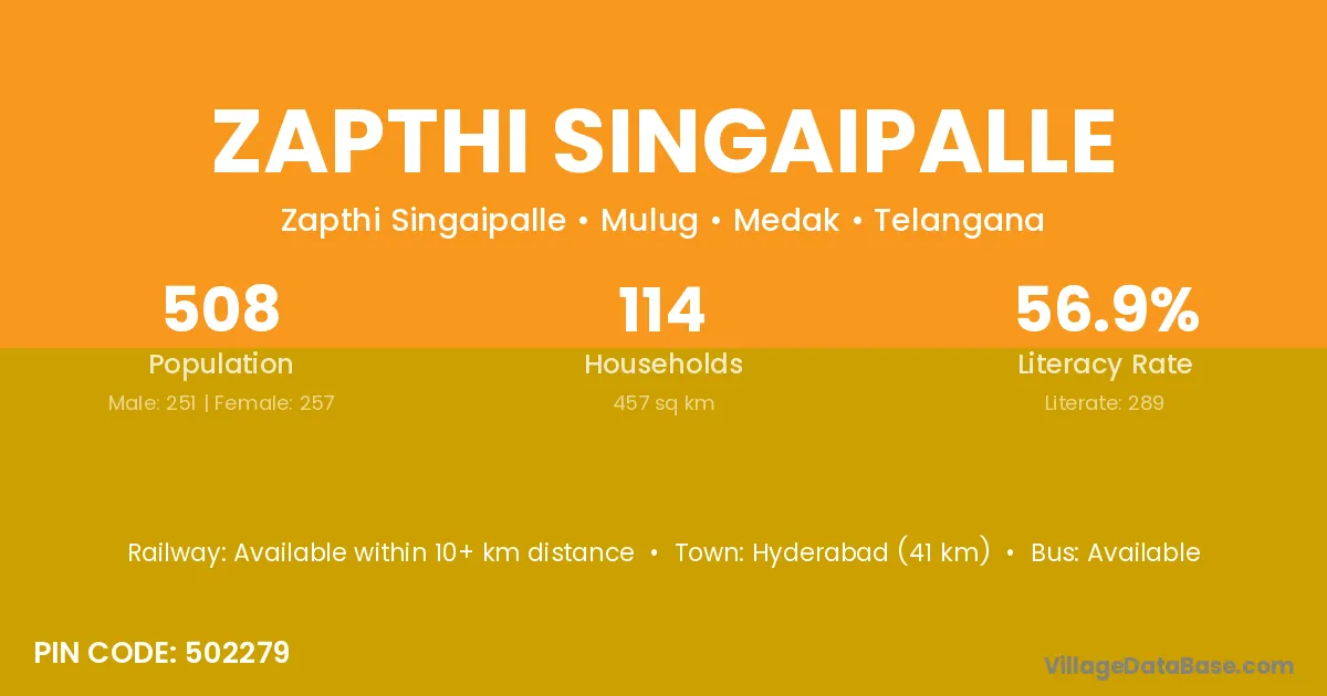According to Census 2011 information, the village code of Zapthi Singaipalle village is 502279.