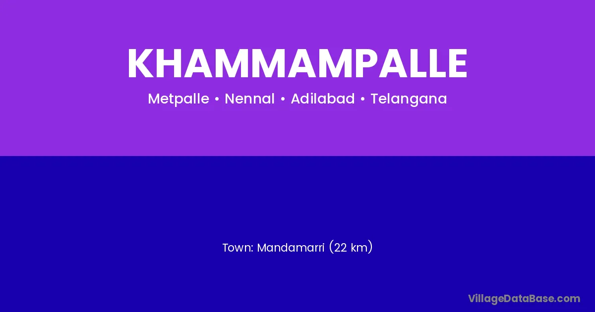 Sadasivpet (21 km) is the nearest town to Khammampalle village for major economic activities and is located approximately 21 km away.