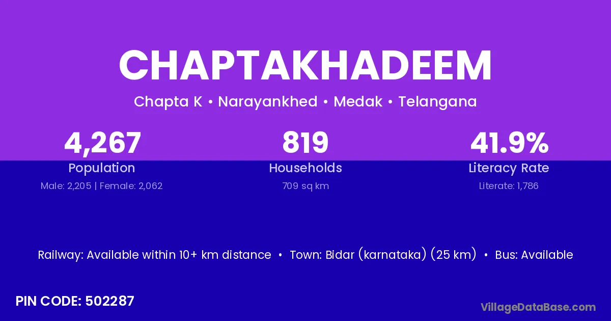 According to Census 2011 information, the village code of Chaptakhadeem village is 502287.