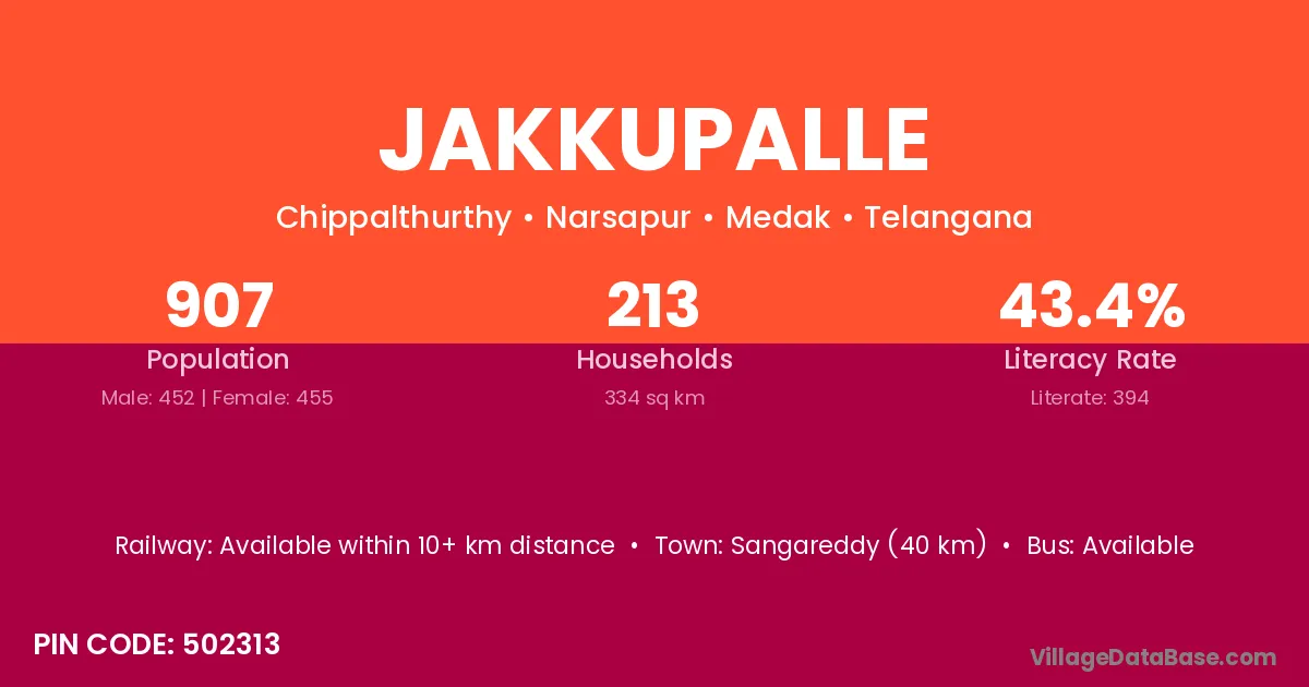 According to Census 2011 information, the village code of Jakkupalle village is 502313.