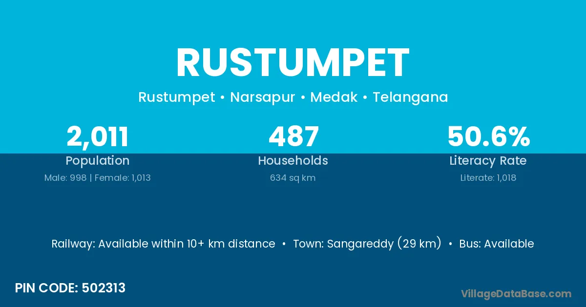 According to Census 2011 information, the village code of Rustumpet village is 502313.