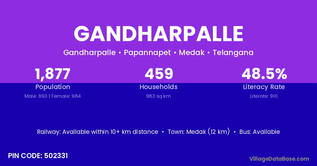 According to Census 2011 information, the village code of Gandharpalle village is 502331.