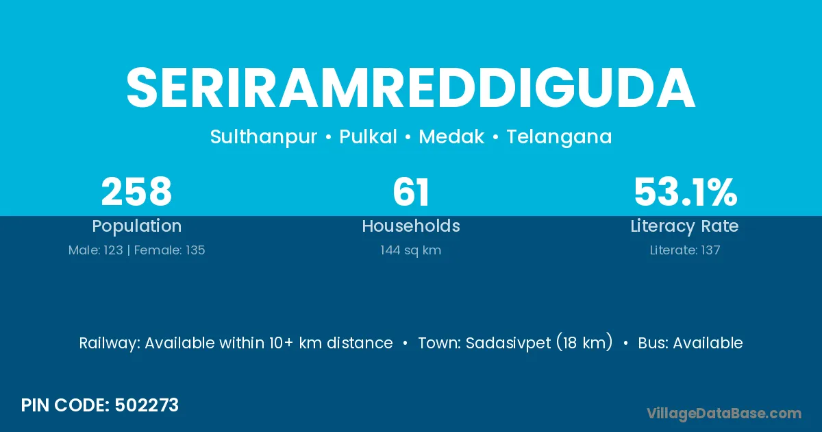 Seriramreddiguda village has a total population of 258 people, of which 123 are males and 135 are females.