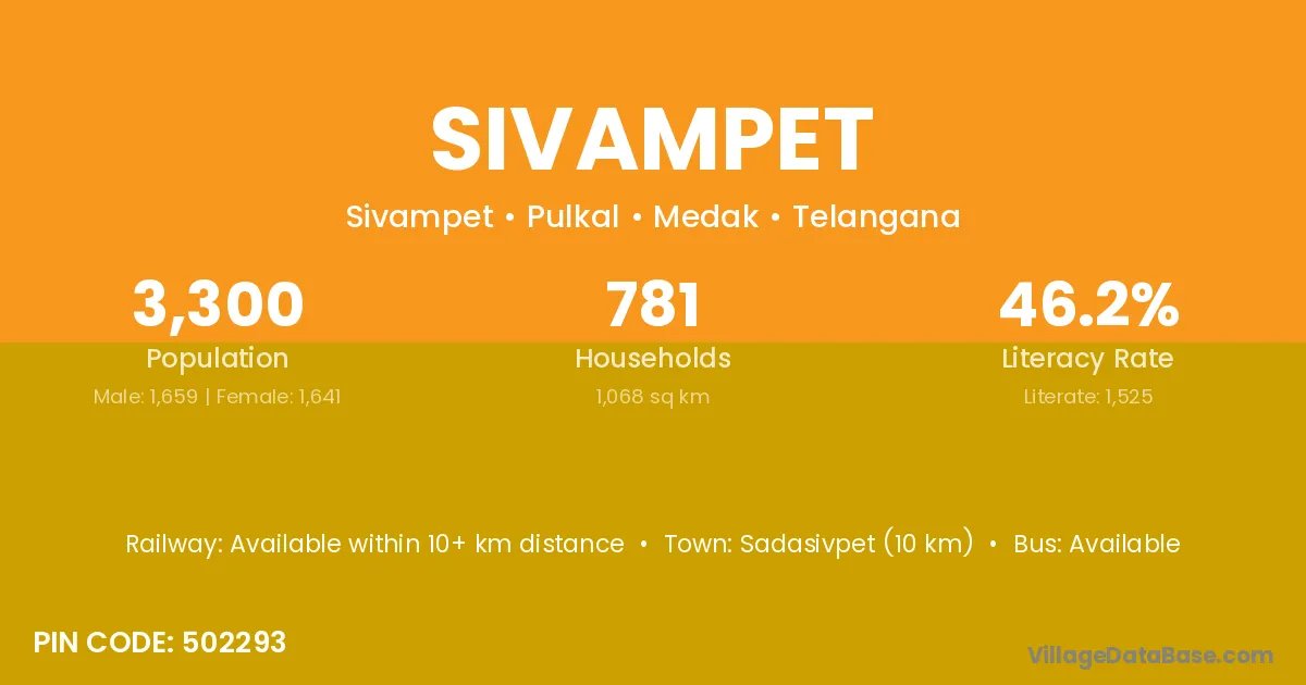 Sadasivpet (10 km) is the nearest town to Sivampet village for major economic activities and is located approximately 10 km away.