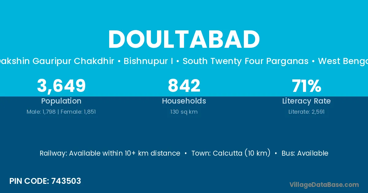 The literacy rate of Doultabad village is 50.42%. Male literacy stands at 61.38% and female literacy at 38.50%.