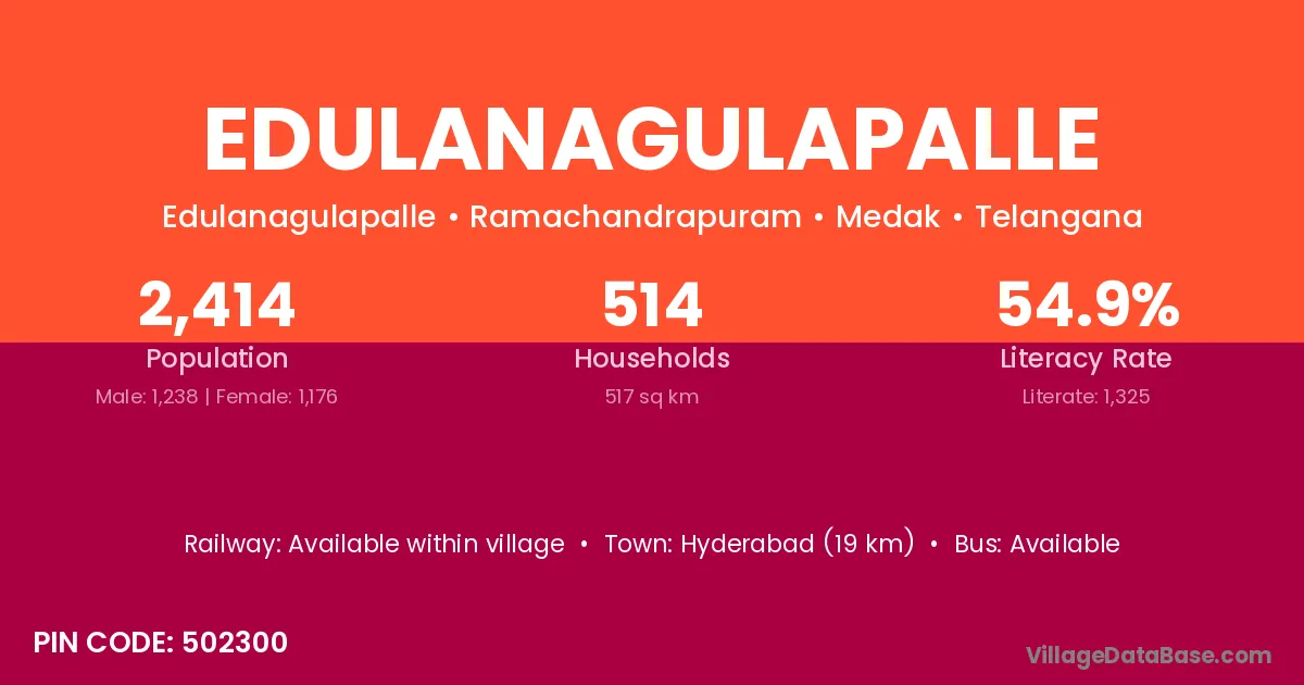 According to Census 2011 information, the village code of Edulanagulapalle village is 502300.