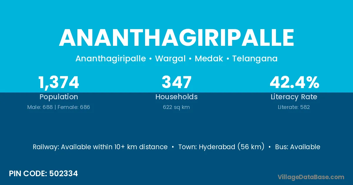 According to Census 2011 information, the village code of Ananthagiripalle village is 502334.