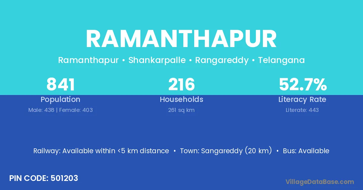 According to Census 2011 information, the village code of Ramanthapur village is 502335.