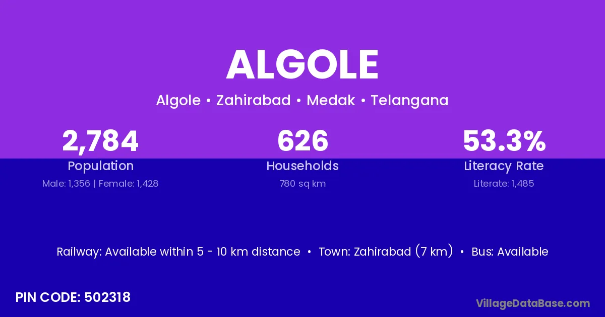 Zahirabad (7 km) is the nearest town to Algole village for major economic activities and is located approximately 7 km away.