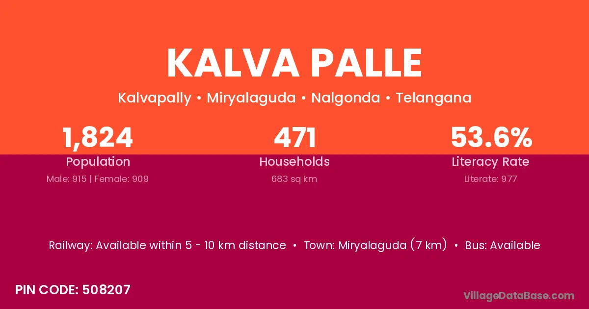 Miryalaguda (7 km) is the nearest town to Kalva Palle village for major economic activities and is located approximately 7 km away.