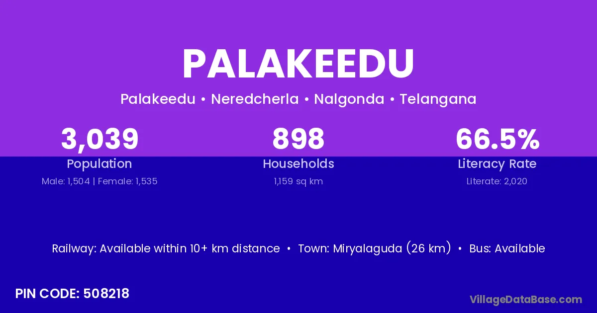 Miryalaguda (26 km) is the nearest town to Palakeedu village for major economic activities and is located approximately 26 km away.