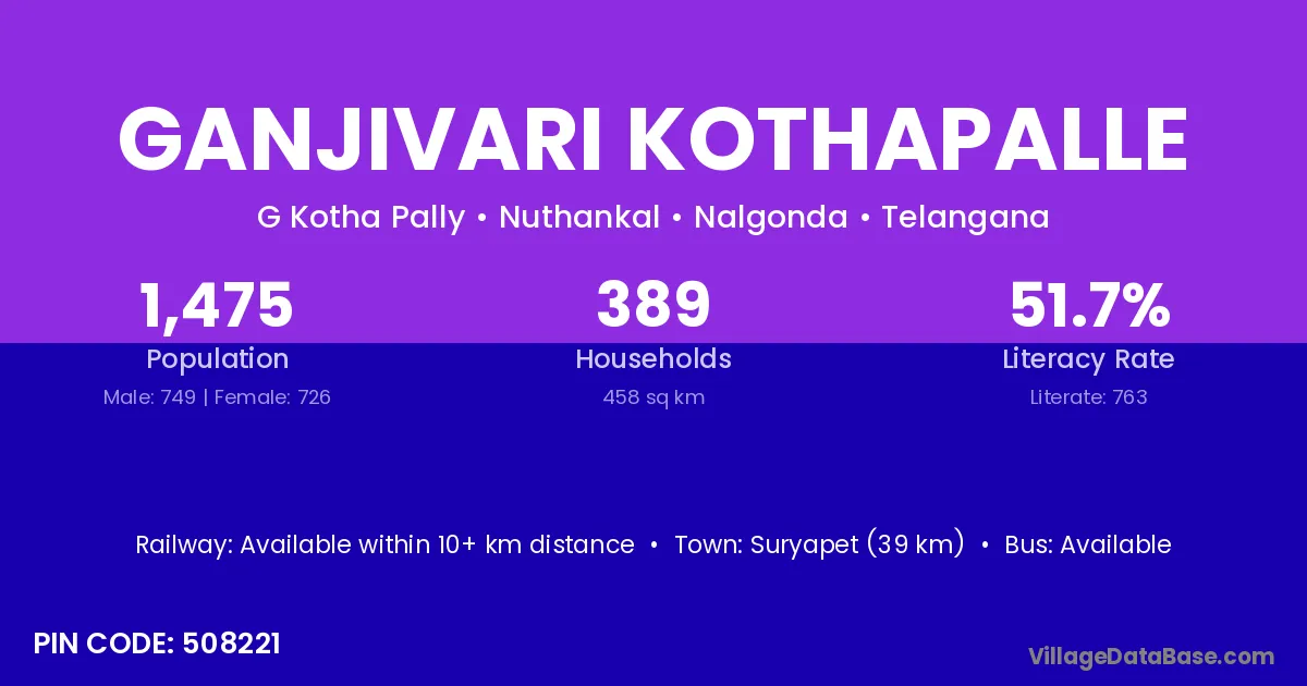 According to Census 2011 information, the village code of Ganjivari Kothapalle village is 508221.