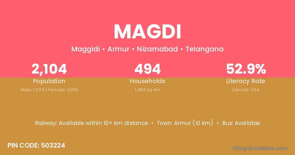 Armur (10 km) is the nearest town to Magdi village for major economic activities and is located approximately 10 km away.
