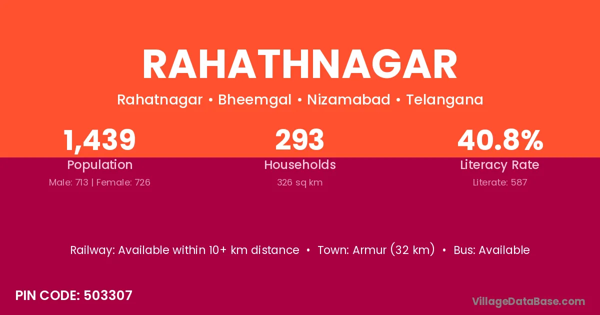Armur (32 km) is the nearest town to Rahathnagar village for major economic activities and is located approximately 32 km away.