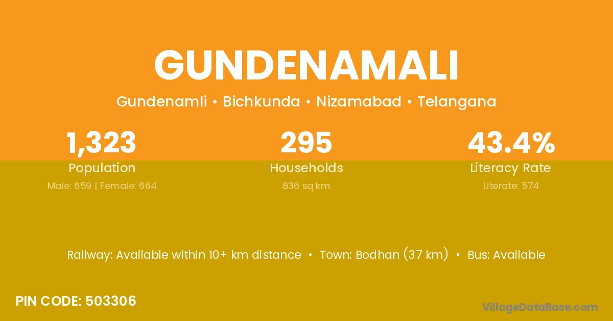 Bodhan (37 km) is the nearest town to Gundenamali village for major economic activities and is located approximately 37 km away.