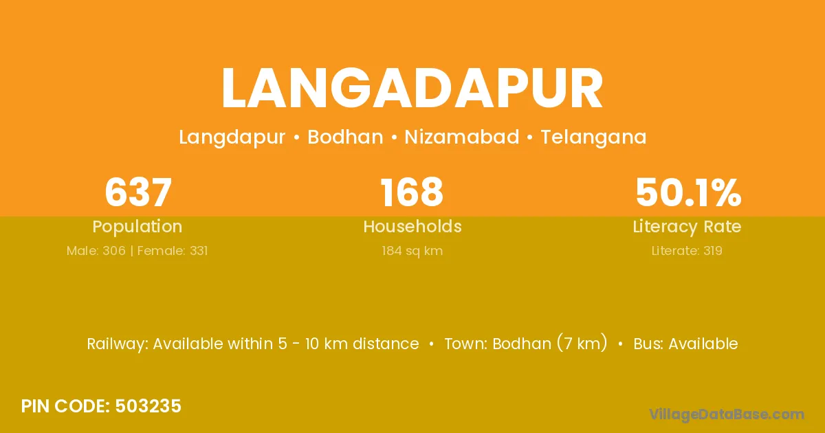 Bodhan (7 km) is the nearest town to Langadapur village for major economic activities and is located approximately 7 km away.