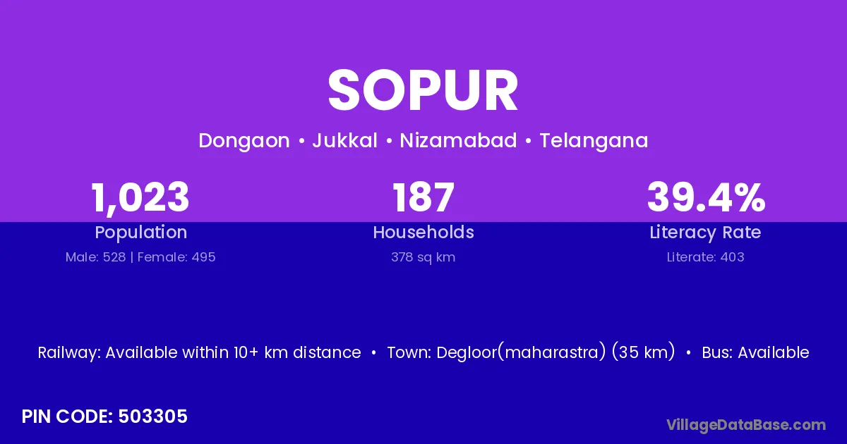 According to Census 2011 information, the village code of Sopur village is 503305.