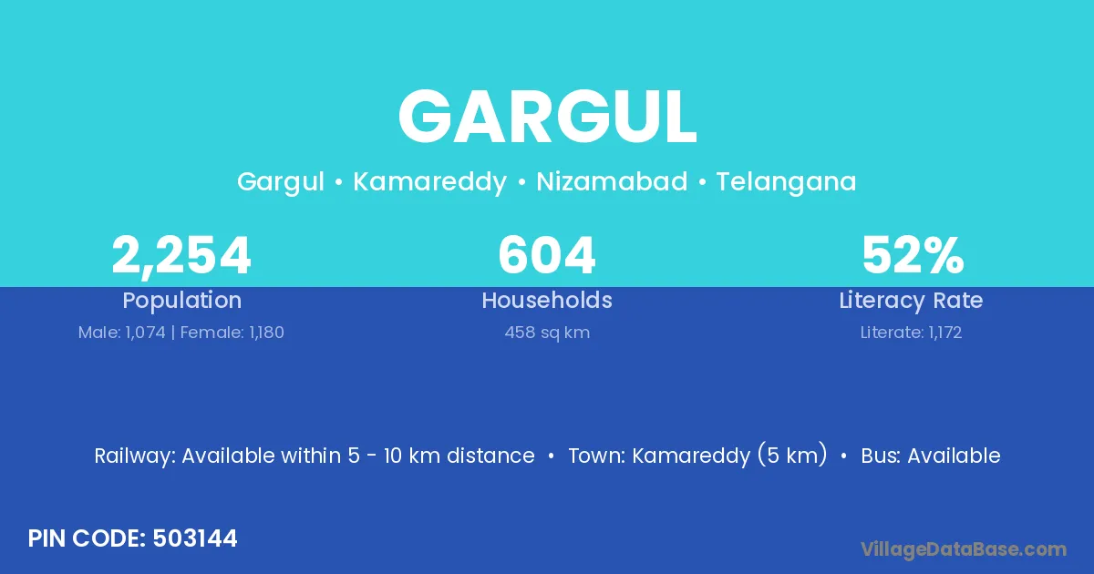 Kamareddy (5 km) is the nearest town to Gargul village for major economic activities and is located approximately 5 km away.
