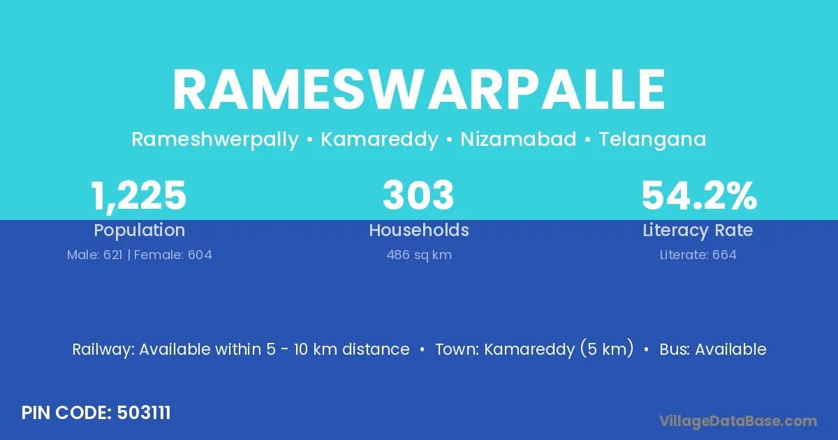 Kamareddy (5 km) is the nearest town to Rameswarpalle village for major economic activities and is located approximately 5 km away.