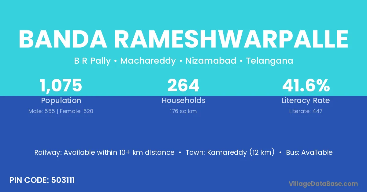 According to Census 2011 information, the village code of Banda Rameshwarpalle village is 503111.