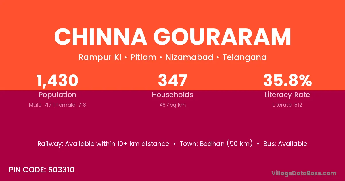 Bodhan (50 km) is the nearest town to Chinna Gouraram village for major economic activities and is located approximately 50 km away.