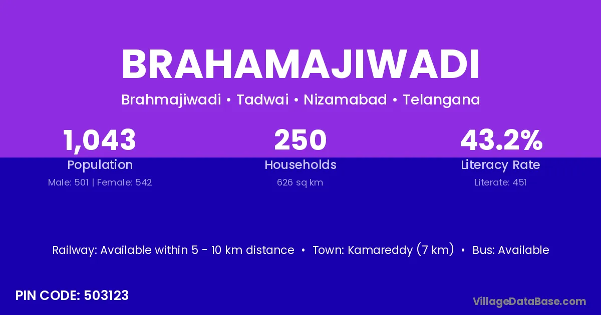 Kamareddy (7 km) is the nearest town to Brahamajiwadi village for major economic activities and is located approximately 7 km away.