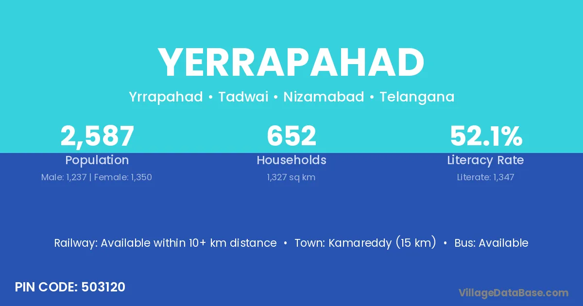 Kamareddy (15 km) is the nearest town to Yerrapahad village for major economic activities and is located approximately 15 km away.