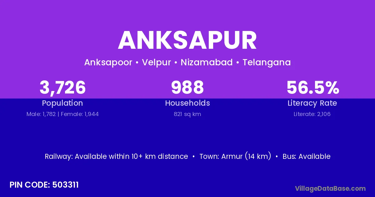 Armur (14 km) is the nearest town to Anksapur village for major economic activities and is located approximately 14 km away.