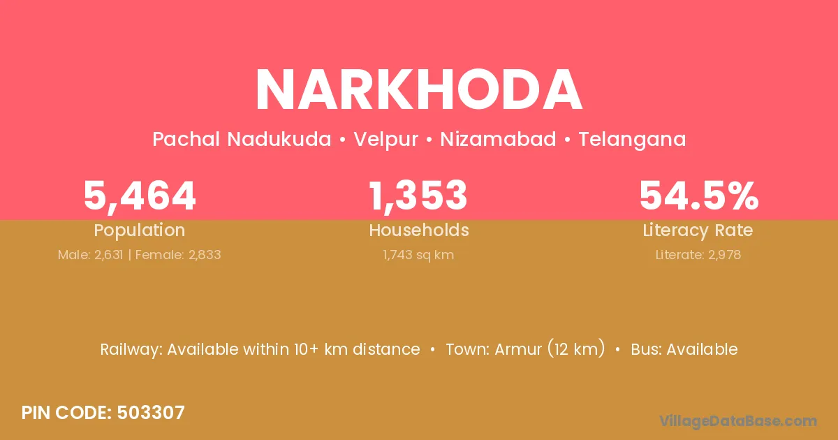 Armur (12 km) is the nearest town to Narkhoda village for major economic activities and is located approximately 12 km away.