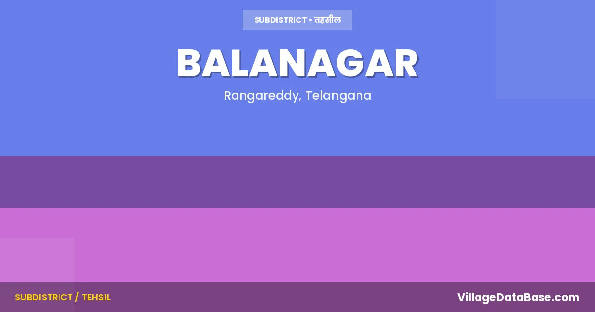 Balanagar is a town and Mandal in the Rangareddy district of the Telangana. In India, a Mandal is a subdivision of a district responsible for the administration and revenue collection of a specific area within the district. Mandals play a crucial role in the local governance structure, contributing significantly to the development and administration of their communities.