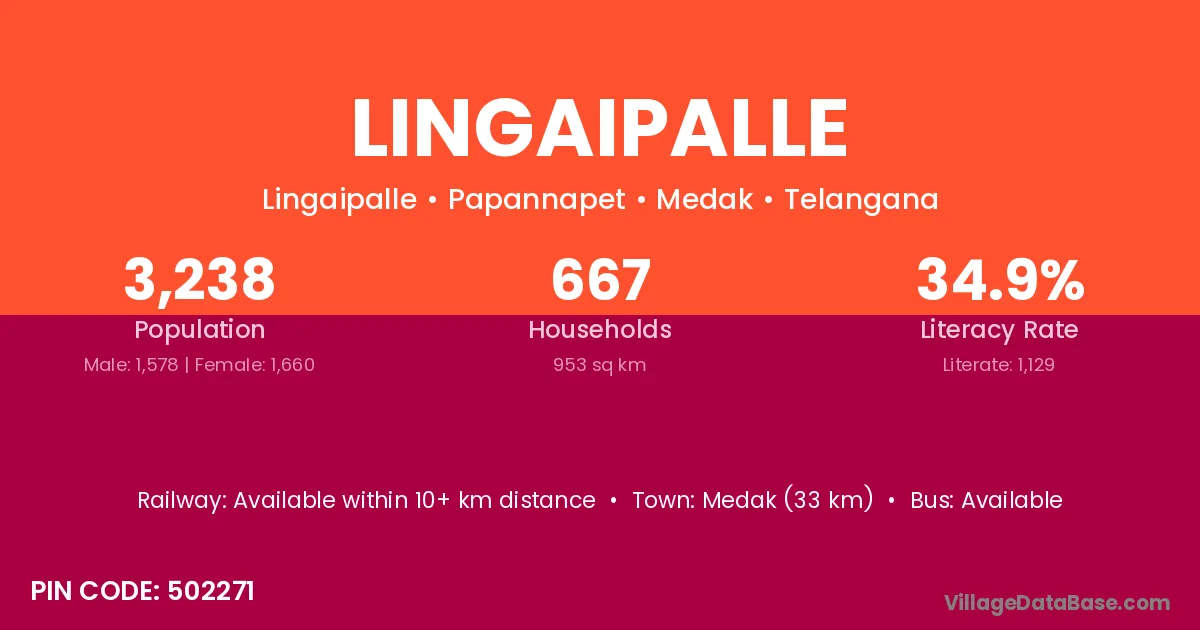 Mahbubnagar (21 km) is the nearest town to Lingaipalle village for major economic activities and is located approximately 21 km away.