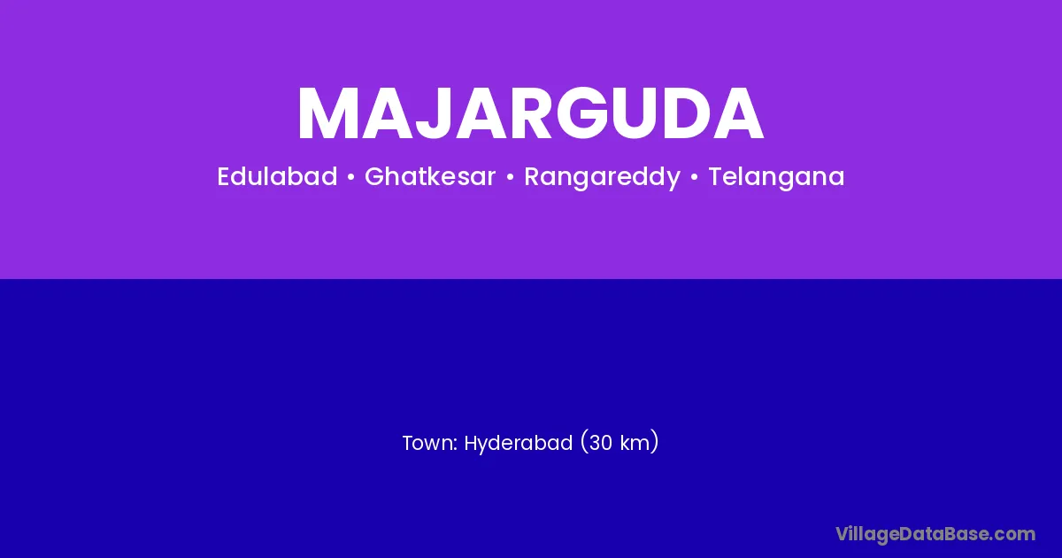 Hyderabad (30 km) is the nearest town to Majarguda village for major economic activities and is located approximately 30 km away.
