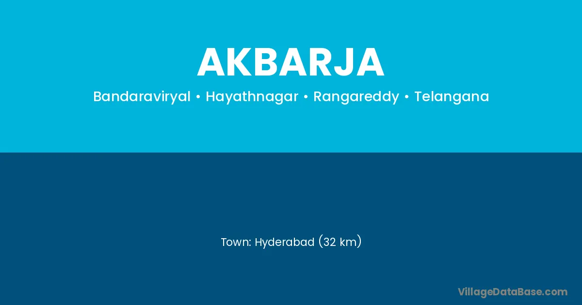 Hyderabad (32 km) is the nearest town to Akbarja village for major economic activities and is located approximately 32 km away.