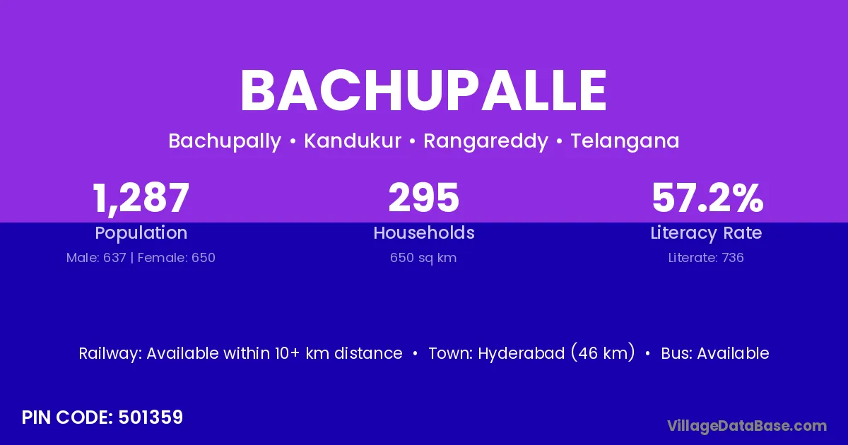 Hyderabad (46 km) is the nearest town to Bachupalle village for major economic activities and is located approximately 46 km away.
