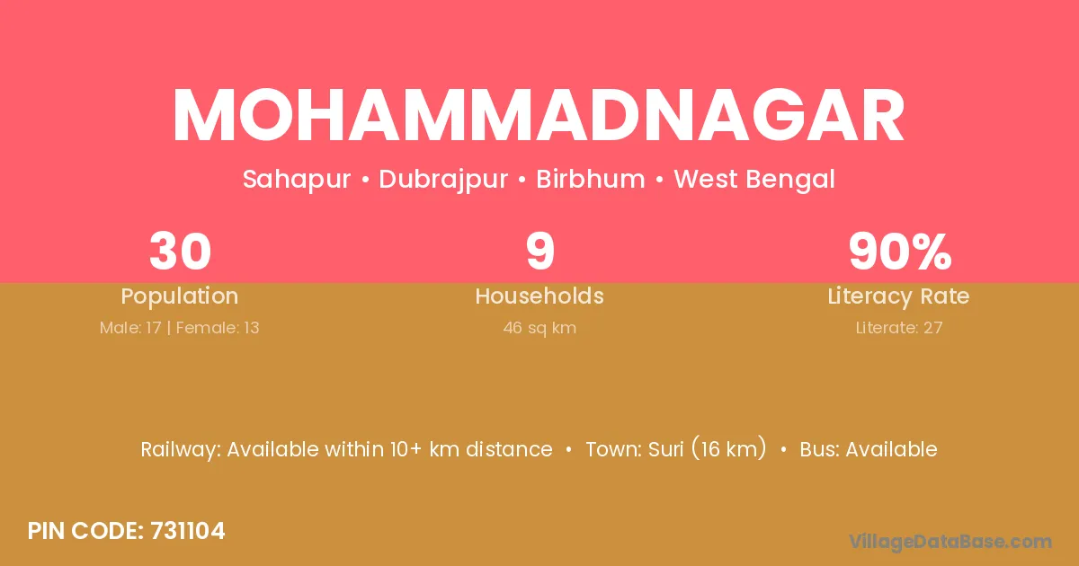 The literacy rate of Mohammadnagar village is 44.08%. Male literacy stands at 50.57% and female literacy at 37.97%.