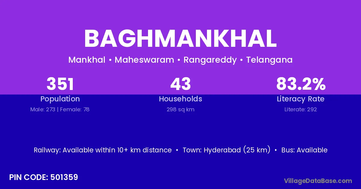 Hyderabad (25 km) is the nearest town to Baghmankhal village for major economic activities and is located approximately 25 km away.