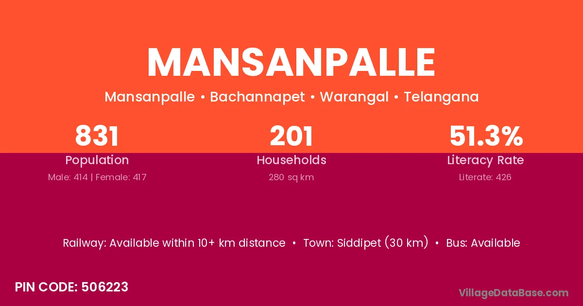 According to Census 2011 information, the village code of Mansanpalle village is 509325.