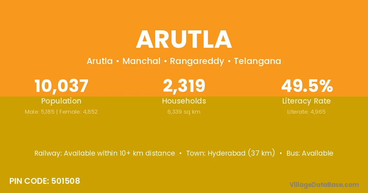 Hyderabad (37 km) is the nearest town to Arutla village for major economic activities and is located approximately 37 km away.