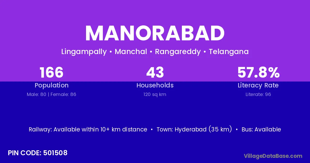 According to Census 2011 information, the village code of Manorabad village is 501508.