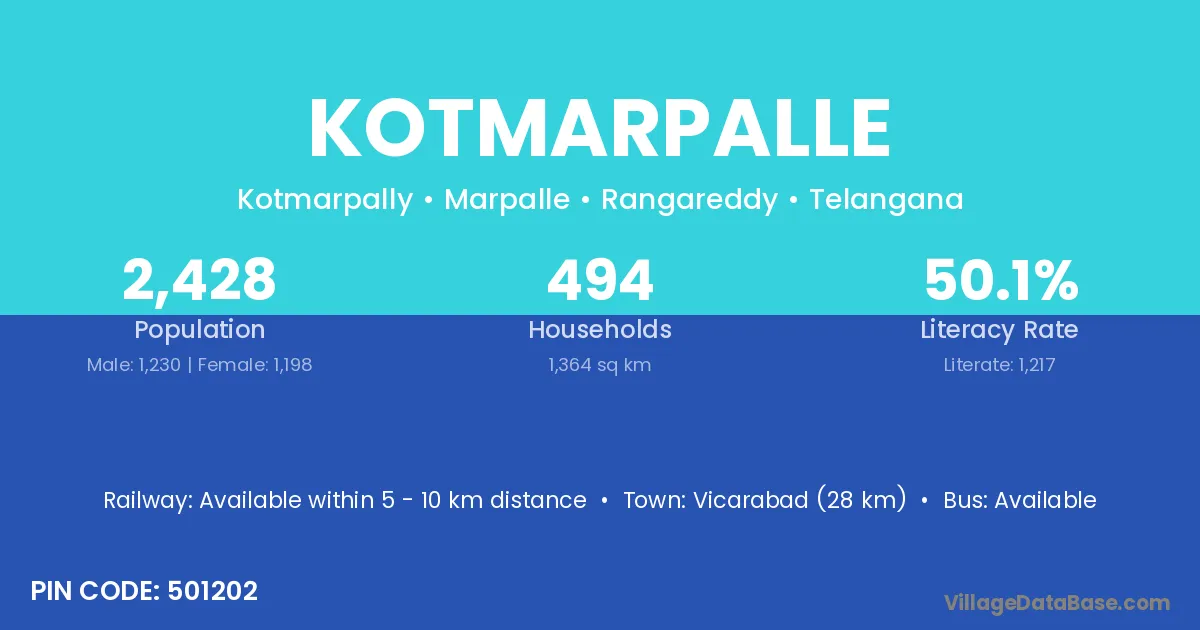 According to Census 2011 information, the village code of Kotmarpalle village is 501202.